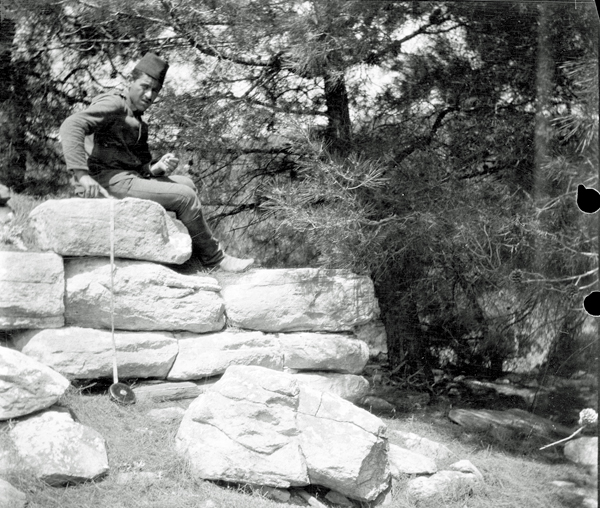 Penoyre paid particular attention to the acropolis: the circuit walls, gates and structures, including sculpted remains. For scale, many of Penoyre’s images use the distinctive figure of Ali Ismail and the ubiquitous walking cane (or an occasional rifle) propped up against walls.