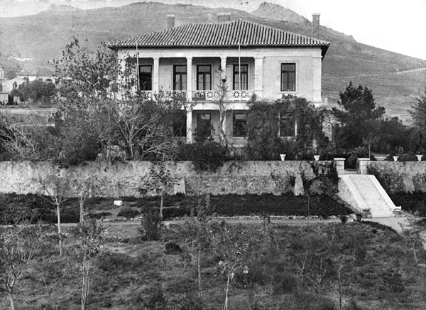 After sailing through the Straits of Salamis, the expedition spent two days in Athens during which time, the passengers were entertained by the British School Director, Robert Carr Bosanquet, possibly on the grounds of the School. The image below, taken by Bosanquet in 1902 but not photographed during one of the Argonaut cruises, shows the BSA Director’s house and garden-then in the countryside outside of the centre of the city -at approximately the same time as the first Argonaut cruise.