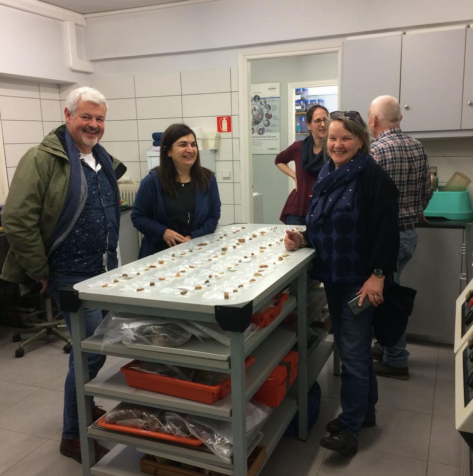 We celebrated the success of the day with a shared mezze meal at a very hipster restaurant somewhere in the gridded blocks of streets which make up a great deal of Athens. To be honest I didn’t know where we were, but the food was excellent as well as the company and it was a great choice. The following day Vangelio, Maria and colleagues Noémi and Zoe treated Win, myself and Paul Reynolds to a tour around the research facilities at the remarkable Fitch Laboratory at the BSA. This amazing research centre houses a significant resource of over 10,000 thin sections of archaeological ceramics and geological samples from around the Aegean and many parts of the Mediterranean, which forms a unique database. Our Tintagel samples will join them. It was fascinating to watch the magical processes that go into making up those precious thin sections which give us such singular insights into the production of these pots – these extraordinary pots which carry such powerful stories linking and forging relationships and connectivity between such distant and remote worlds.