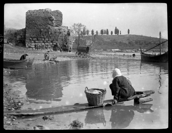 Henderson, a former BSA student (admitted originally in 1897-98) as the Owen Jones Student of Royal Institute of British Architects and until his return to Britain in 1904 was listed as a BSA architect. By 1902, Henderson was residing in Constantinople where he was studying Byzantine architecture. Although Hasluck donated the negatives of photographs documenting the visible remains of Cyzicus to the Society for the Promotion of Hellenic Studies (SPHS), it was probably Henderson who was the photographer. Henderson’s photographs can be identified by his monogram sketched onto the negatives. In addition, many of the photographs include the figure of Hasluck for scale.