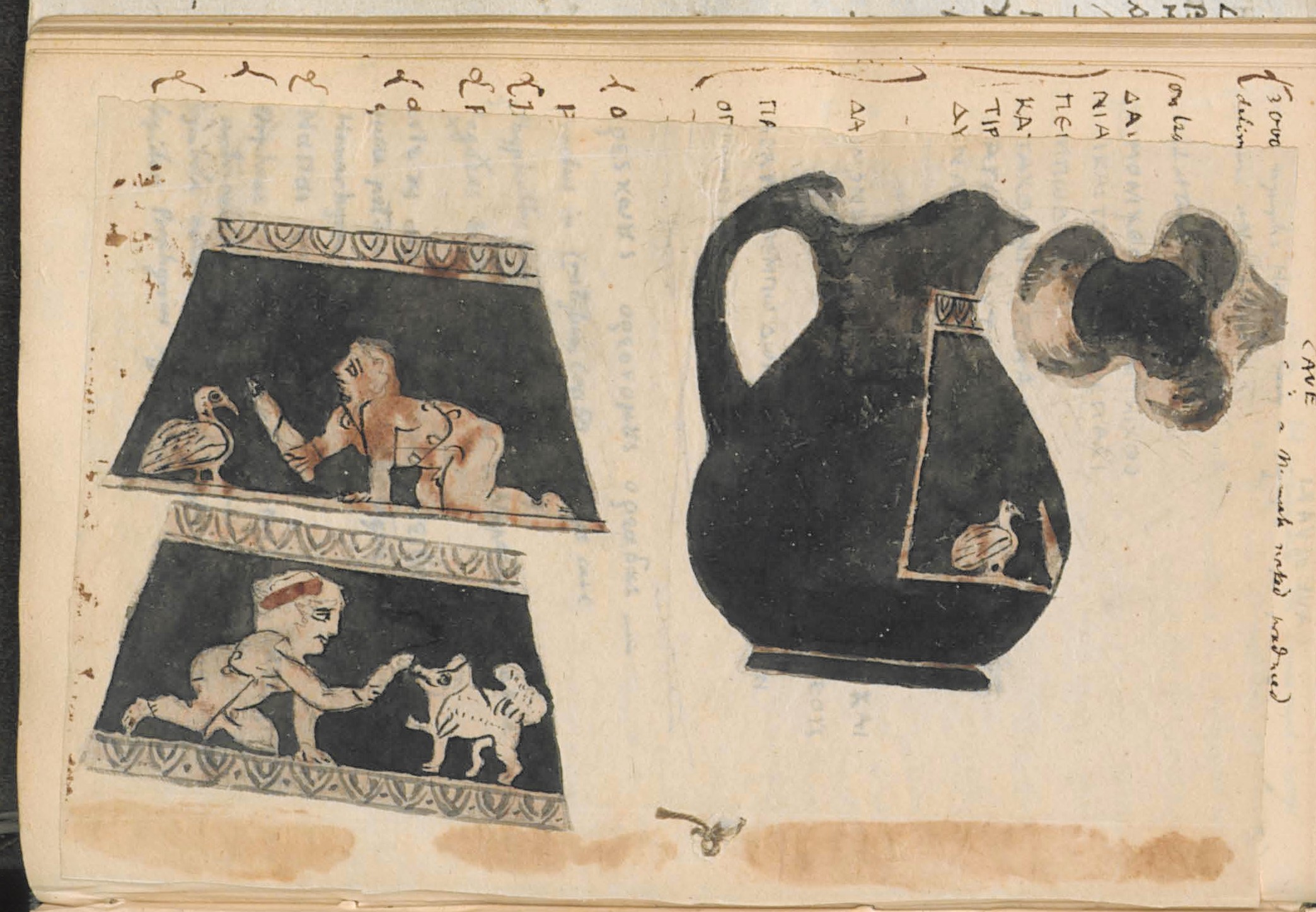 Two sheets of paper with drawings of vases have been inserted into this notebook. They are remarkably similar to drawings in a notebook at the British Museum which belonged originally to Dodwell, though I don’t believe they are by the same hand, BM Museum number 2012,5019.1.6 and BM Museum number 2012,5019.1.8. The lekythos features in an engraving by H. Moses after a drawing by Pomardi in Dodwell’s publication with the following text: