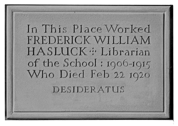 Hasluck began his fieldwork career at the BSA surveying the ancient city of Cyzicus with Arthur Edward Henderson in 1902, the topic of a previous Archive Story, The Cyzicus Question. The advent of WWI brought his travelling to an end. However, during the war years, Hasluck (whose health had begun to deteriorate) continued to work from the BSA library helping to coordinate counter-espionage efforts for British Intelligence, headquartered at the BSA. The author Compton Mackenzie, who had been the Special Intelligence Bureau representative for the Eastern Mediterranean, fulsomely praised Hasluck in his book, Greek Memories, as a fine scholar with an accurate, patient and logical mind and an invaluable asset in the War effort. In 1916, he was diagnosed with tuberculosis, retired to France and eventually moved to a sanatorium in Switzerland. Tragically, Hasluck died in 1920, a few days after his 42nd birthday. A small plaque in the library is dedicated to him, marking his presence as a notable BSA figure.