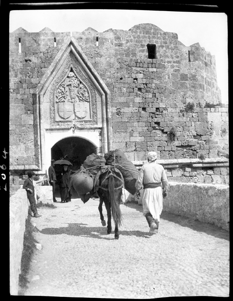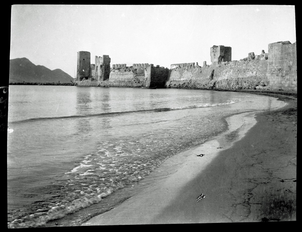 Concluding his study of the Cyzicus district and with no further obligations in Laconia, Hasluck was free to develop an interest in Frankish monuments. On Chios, from 1907 to 1909 he studied the various monuments dating from the Genoese occupation, publishing his observations in 1909. According to the BSA Annual Report, between visits to Chios, Hasluck spent part of 1908 visiting Lesvos, Aenos (modern Enez), Lemnos, and Phocaea (modern Foça) documenting the medieval remains of the Gattelusi. Also in 1908, he spent some time in Messenia, photographing the Venetian stronghold at Methone. The following year Hasluck travelled with A.M. Woodward to Rhodes and later to Southwest Asia Minor, the subject of a previous Archive Story (Hasluck and Woodward in S.W. Anatolia), publishing on the Frankish remains from Antayla. While in Rhodes, Hasluck also photographed the medieval monuments on the island.