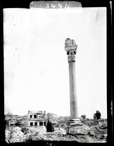 Near the end of this 1910 trip, he sailed from Samsun on the Pontic coast to Constantinople. Here he photographed monuments such as the Aqueduct of Valens and Column of Marcian which had recently been made accessible by fires. It is probable that he also made a systematic photographic study of the walls of Constantinople at this time.
