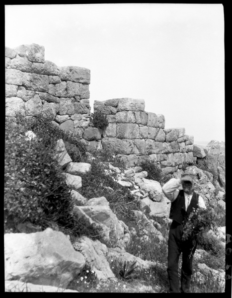 BSA SPHS 01/1654.4129. Cyzicus fortifications: E. wall and gate near Amphitheatre with F.W. Hasluck for scale (1902)