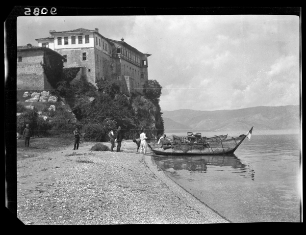 In his last year of long-distance travel before the onset of WWI, Hasluck visited the northern towns of Thessaloniki and Kavala. Further north, into Northern Macedonia, Hasluck went to Lake Ohrid where he photographed the church of St. Sophia and the Monastery of Saint Naum. This was at a time he was studying the Bektashi, a wide-spread order of dervishes which incorporated aspects of other mystery cults. The Christian monastery on the lake was considered a place of pilgrimage for the Bektashi as it contained the tomb of the Slav saint Naum who was said to have been identified with the legendary dervish saint, Sari Saltik.