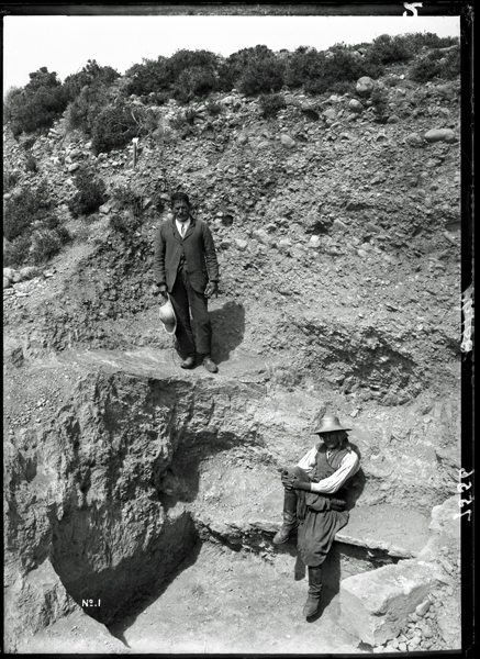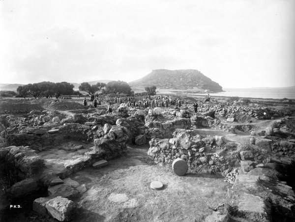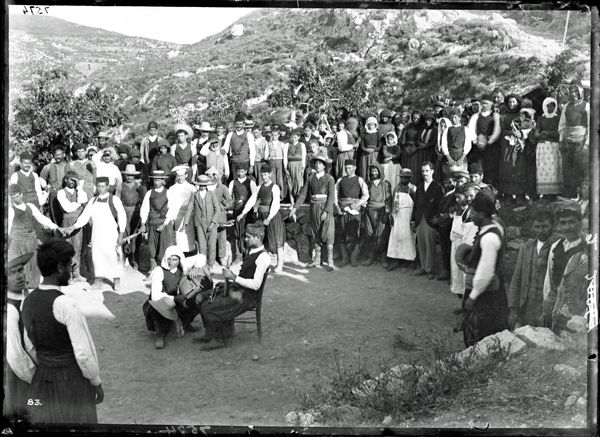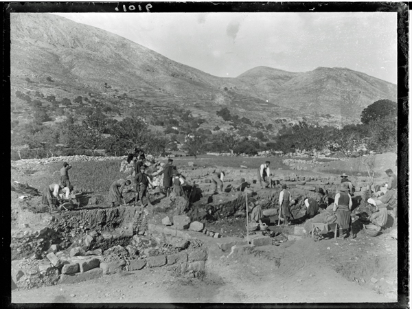 Both Praisos and Petras were carried out under the directorship of R.C. Bosanquet (BSA Director 1900-1906). The bulk of the work at Praisos, from May to July 1901, was attributed to BSA students J.H. Marshall, E.S. Forster, and R. Douglas Wells (architect). In addition to excavation images from Praisos, there are scenes of an end of season festival (glendi) with music, dancing, and wrestling matches.