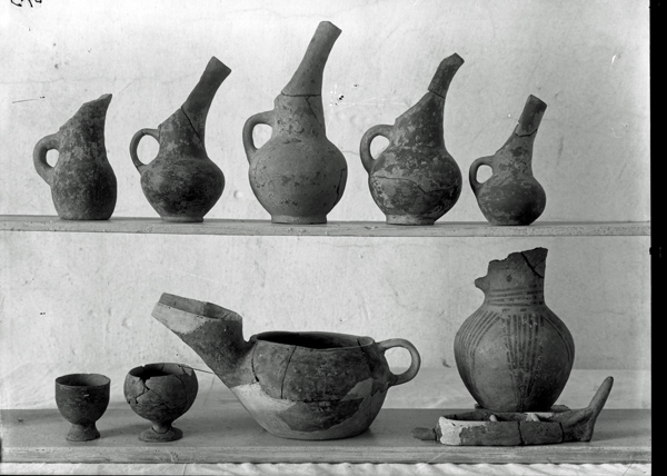 The excavations of 1902-1906 cover a wide range of smaller explorations in the general Palaikastro region including Petsofa, Kastri, Ta Ellinika, Agkathia, the neolithic site of Magasa and burials in the river bank, on the cliff and in the gravel ridges. However, the bulk of the images cover the main Roussolakkos site with its Bronze Age settlement and the later Temple of Dictaean Zeus. By 1904, Dawkins was completely in charge, and the preliminary publication for this season’s work included an in-depth essay on chronology based on Evans’ work at Knossos. The captions on images of material from 1904 to 1906 reflect this change, where ‘Minoan’ was now used as a chronological marker rather than ‘Mycenaean’. These refinements and a better understanding of prehistoric chronology from Palaikastro led Dawkins (BSA Director 1906-1913) to return to Melos and re-investigate the previous BSA Phylakopi excavation in 1911 (see Archive Story, Digging II). Although there were annual preliminary reports on the Palaikastro excavations in the Annual of the British School at Athens (ABSA), the final publication only appeared years later in 1923.