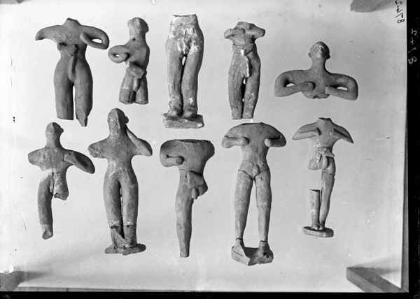 The larger number of images from the Palaikastro excavations span five years of work. Although the excavations were begun by Bosanquet, it was R.M. Dawkins who was given the responsibility of carrying them out. In his unpublished autobiography, Dawkins remarked that he had started at Palaikastro with very little experience other than his study of the pottery excavated by Hogarth at Zakro in the Museum in Candia (Heraklion) during the winter of 1902 (although the autobiography states 1901). He arrived at Palaikastro in March of 1903 with W.L.H. Duckworth (who would later study the skeletal material from the site). Bosanquet, considered by Dawkins to have a ‘restless spirit’, soon afterwards departed for Athens leaving Dawkins completely in charge.