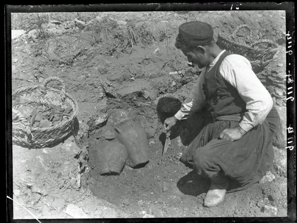 BSA SPHS 01/4900.6019. Palaikastro South Gravel Ridge: Larnakes burials with W.L.H. Duckworth (ca. 1903)