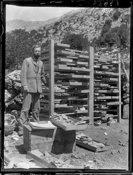 At the close of the Archive Story, Digging II, which chronicled the growth of British School at Athens (BSA) excavations in the late 19th century, I mentioned that the BSA had turned its sights to Crete at the beginning of the 20th century. Given the change in the political situation on the island, new opportunities for excavation had opened up. Perviously, the island had been part of the Ottoman Empire, but numerous insurrections against external rule led to an unstable situation. By 1898, the four powers of Britain, Italy, France and Russia intervened, allowing for the creation of an autonomous Cretan State, a prelude to the incorporation of Crete into the Greek State in 1913. During this interlude Arthur Evans began his excavations at Knossos in 1900. The BSA Director at the time, D.G. Hogarth, also participated in exploring the town and cemeteries around the site of Knossos during Evans’ first season. The BSA proceeded with work at Psychro Cave in 1900, then Praisos, Zakro and trial pits at Petras in 1901. Palaikastro began the following year and continued until 1906 and it proved to be a very productive area for exploration. A good portion of the funding for these early excavations came from the Cretan Exploration Fund, established initially by Arthur Evans and later managed by D.G. Hogarth (BSA Director 1897-1900).