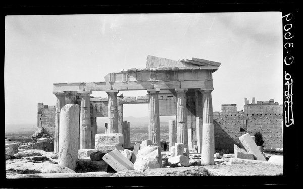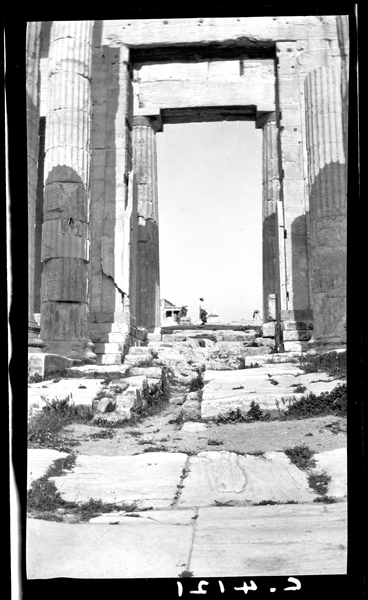 The two other women, Miss Lowe and Miss Rutherford have larger collections, both of which consist of original film negatives. Miss Lowe’s images are in two groups, each in a different negative format, that may reflect two separate tours – and possibly using different cameras. The first set of negatives are a slightly larger size and depict Delphi, Athens, Eleusis, Marathon, Phyle, Asine, Epidaurus and Tiryns. The second group of smaller negatives are catalogued later in the negative register and depict Mt. Olympus, Pharsala (Thessaly), Monemvasía and Knossos. Miss Rutherford’s collection shows the Ionian islands of Corfu and Ithaca, areas near ancient Stratos and Missolonghi in Western Greece, Meteora in Thessaly, ancient Delphi, Thebes and Athens.