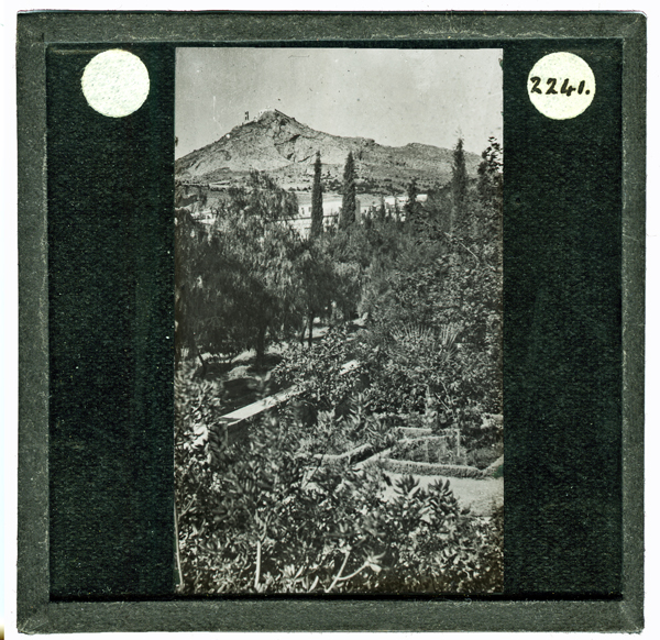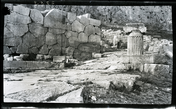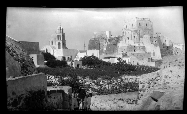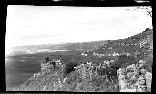 Further afield, Halliday made journeys into various parts of Greece. In Attica, he photographed the walls of Eleutherae, Aegosthena, Palaiochora on Aegina. One photograph of the view between Sparta and Mystras might have been taken when he assisted Richard Dawkins at Sparta, studying material unearthed during the BSA 1906-1910 excavations. There are photographs of Delphi in Central Greece. In the Peloponnese there are photographs of Gortyna, Karytaina and Mount Lykaion, all in Arcadia. Western Greek sites included the fortress at Patras and the ancient site of Samiko. He also visited some islands, photographing places on Paros, Seriphos and Thera. It is unclear when he visited these sites, but likely in multiple journeys during the 1910/1911 academic year.