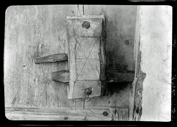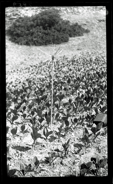 A smaller number of photographs can be classed as specifically ‘ethnographic’. One such is the wooden lock Wace photographed on the island of Tilos, a type Dawkins discusses at length in his 1903 article in the ABSA recounting his Karpathos visit. Dawkins remarked that these wooden objects were fast going out of use, but were significant in retaining elements of ancient locking mechanisms, possibly even descendants of the Homeric lock. Another photograph, also by Wace, shows a talisman for protection against the evil eye in a tobacco field on the island of Amorgos.