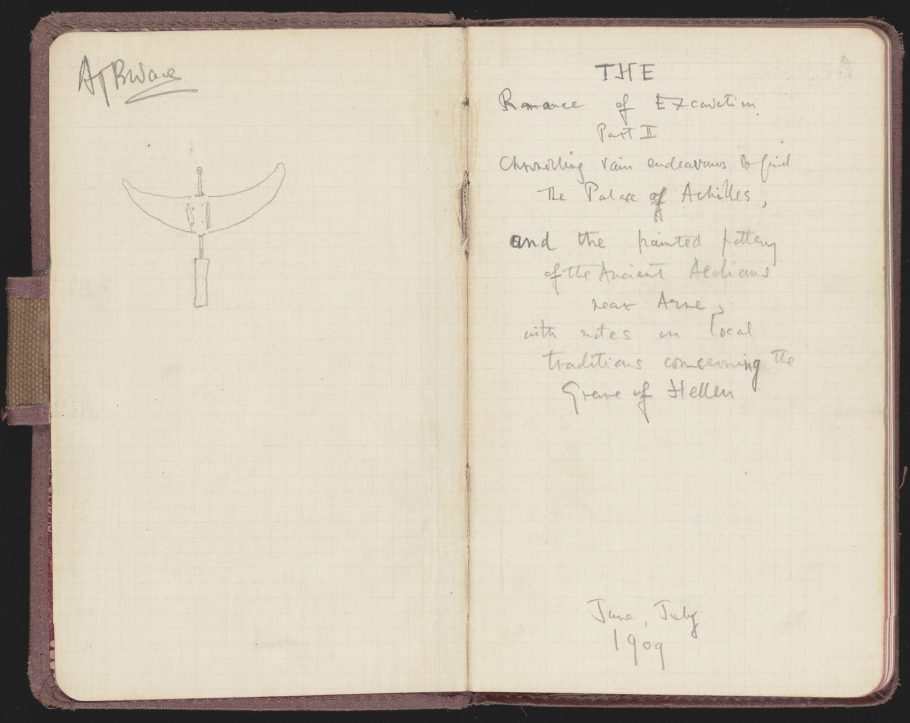 In the summer of 2020, ‘Digital Mycenae’ went live, digitally reuniting the Mycenae excavation archives held at the Faculty of Classics Cambridge and the British School at Athens. Based on this project’s success, we began to formulate a plan for ‘Digital Thessaly’. This was designed to be a collaborative project with the BSA and two archives in Cambridge: in the Faculty of Classics and Pembroke College. Part one of our plan, with substantial input from the archivists at the three institutions, has come to fruition in Early Civilisation in Northern Greece on BSA Digital Collections, facilitated by the BSA IT Officer. A number of the research notebooks kept by Alan Wace that formed the basis of his and Maurice Thompson’s Prehistoric Thessaly, published in 1912, are now available. Wace is an important link between Athens and Cambridge, as a former Director of the BSA (1914–1923) and as Laurence Professor of Classical Archaeology at Cambridge and Fellow of Pembroke College (1934–1944).