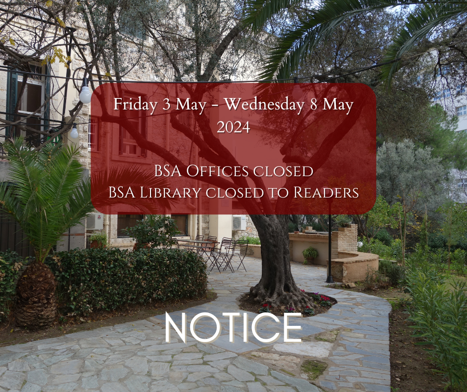 Easter closure April 24, 2024 Please note: the BSA Offices will be closed from Fri 3 May to Wed 8 May inclusive for Orthodox Easter. The BSA Library will also be closed to readers. May 13, 2024