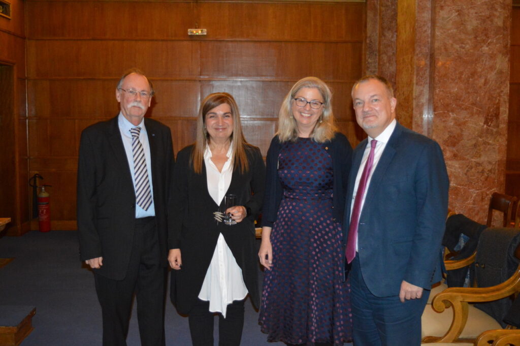 - Left to right: BSA Chair Professor Roderick Beaton, Fitch Lab Director Dr Evangelia Kiriatzi, BSA Director Professor Rebecca Sweetman and HMA Ambassador to the Hellenic Republic Matthew Lodge at the BSA Annual Open Meetings at the Archaeological Society of Athens, February 2024.
