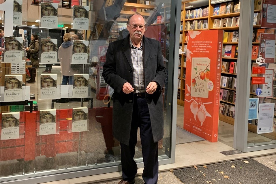 - Professor Beaton with his book “Οι Έλληνες” at the bookshop Evripidis in Kifisia, Feb 2024 (photo courtesy of Professor Georgia Farinou-Malamatari)