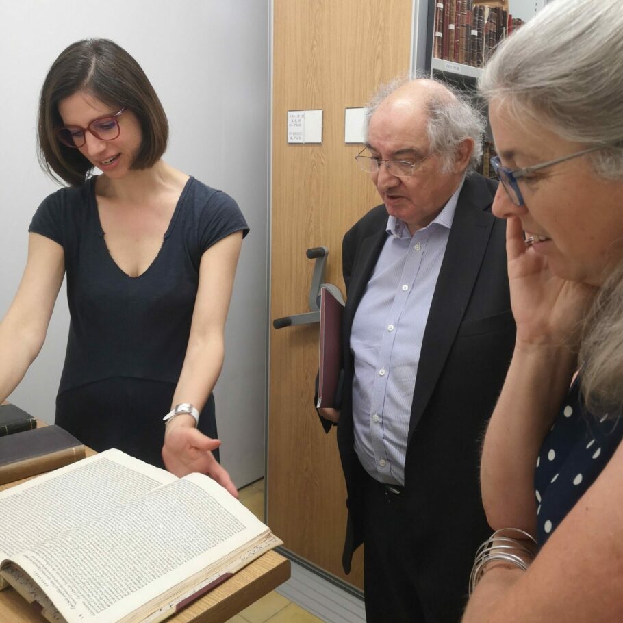 Photo 1: Evi Charitoudi, the Kollakis Librarian 2024-26, and the BSA Director, Prof Rebecca Sweetman, were showing Mr Lou Kollakis the BSA rare books collection