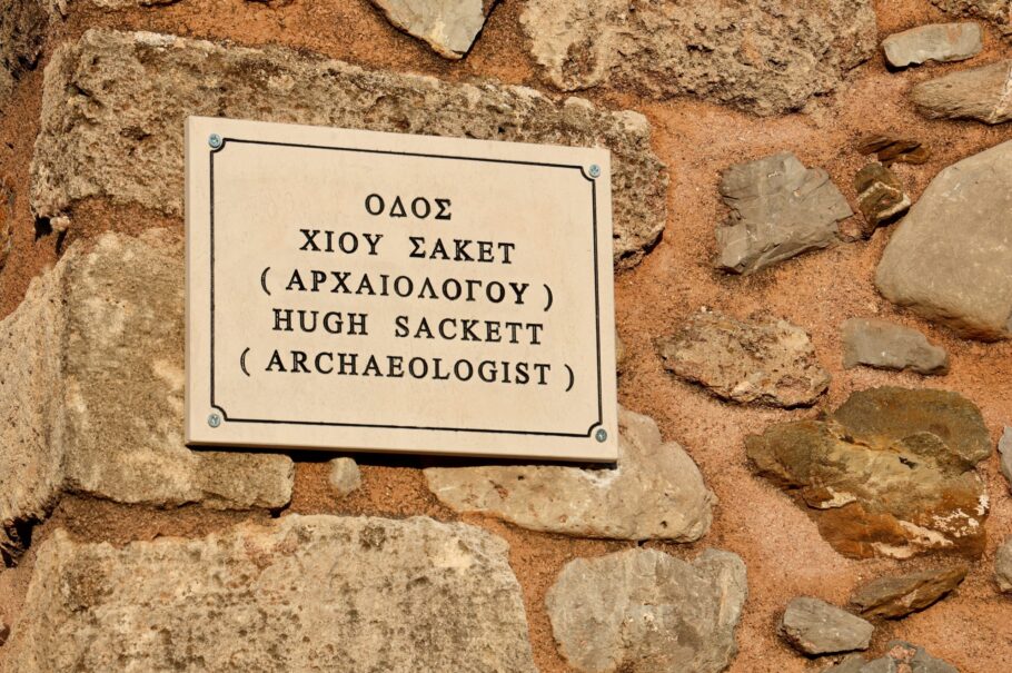 On the 25th June 2025, an inaugural ceremony for Hugh Sackett Street took place in Palaikastro, East Crete, with celebrations including a church service at Aghios Antonios, the unveiling of a marble plaque of the newly-named street now affixed to the stone wall of the BSA Dig House in Aghios Antonios, a reception at the dig house and, finally, dinner in town at the “Mythos”, Hugh’s favourite eatery.