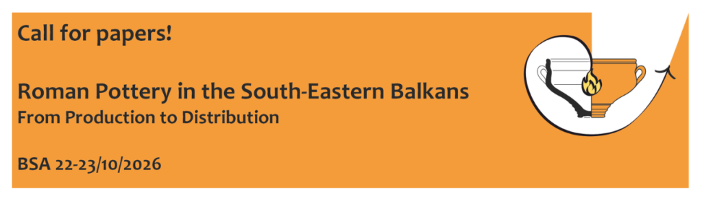 We are delighted to announce that the call for papers is now open. Submit your contribution to the conference Roman Pottery in the South-Eastern Balkans: From Production to Distribution, which will take place on 22–23 October 2026 at the BSA, in collaboration with the German Archaeological Institute at Athens.