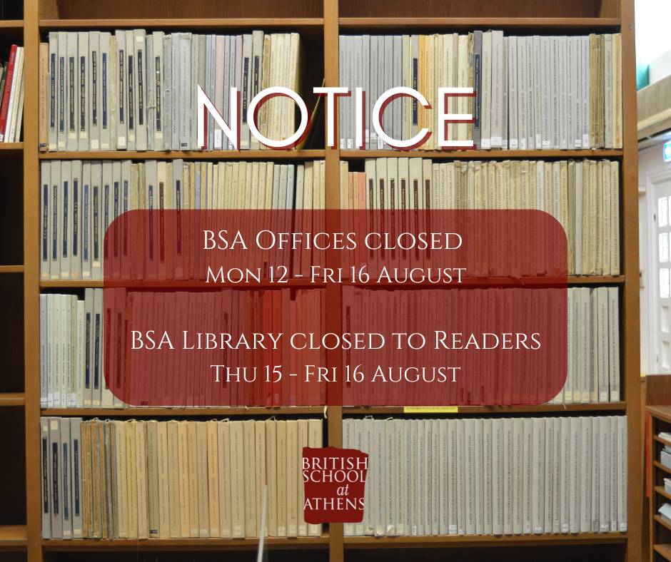 Please note: The BSA Offices will be closed: 6-9 June 2025 The BSA Library will be closed to readers: 9 June 2025