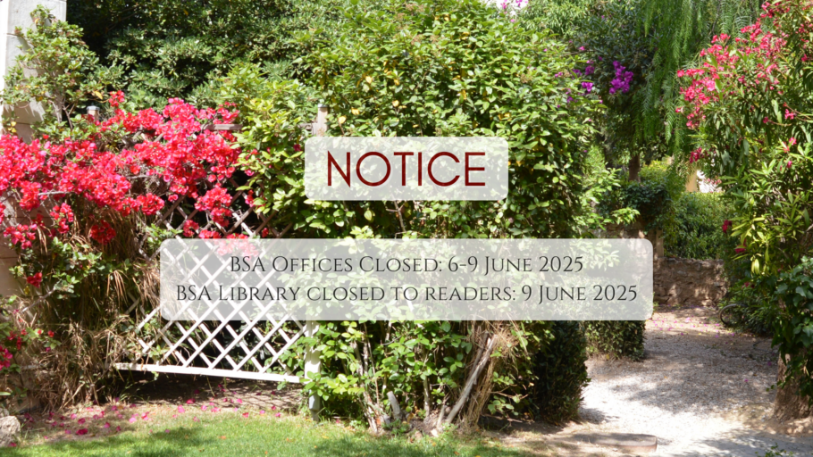 Members & Readers: please note that due to the National Holiday, the BSA Library will be closed to Readers on the 27-28 October 2025 inclusive. The BSA Offices will also […]