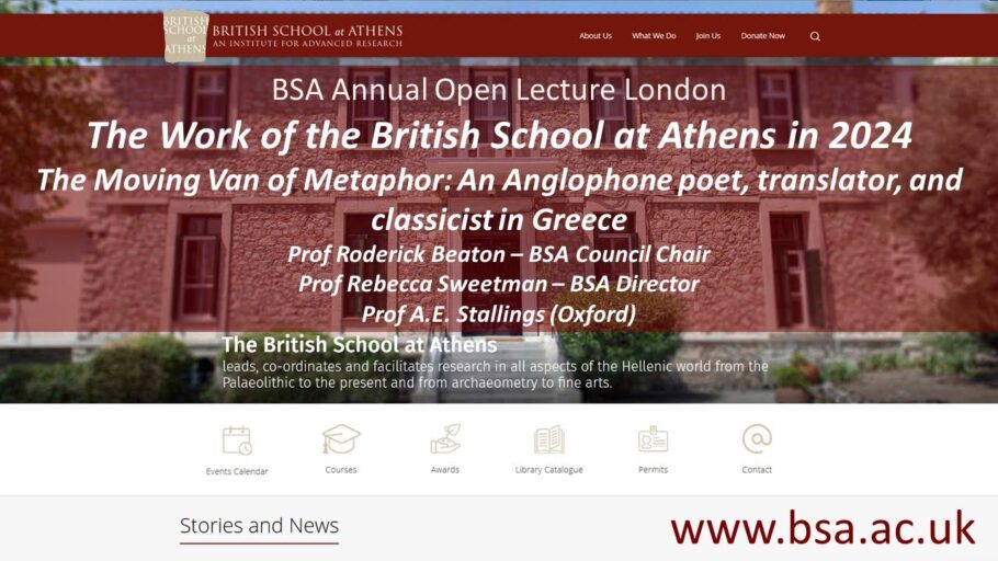 The Work of the BSA: 2025 Annual Open Lecture London – The Moving Van of Metaphor: An Anglophone poet, translator, and classicist in Greece