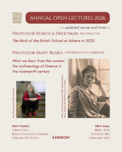 Please join us for the Annual Open Lectures of the British School at Athens on Tuesday 3rd February at 6 pm