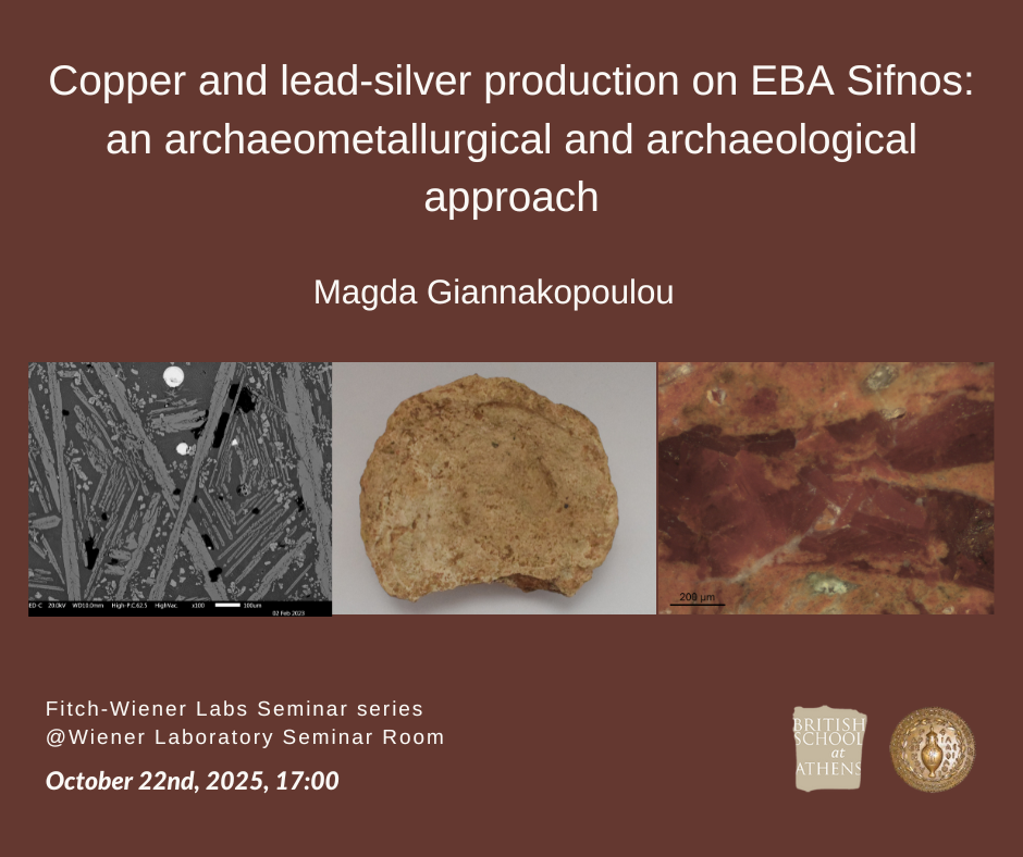 American School of Classical Studies at Athens, Wiener Laboratory 54 Souidias Street, Athens, GreeceFitch-Wiener Seminar Dr. Marek Verčík (Institute of Classical Archaeology, Faculty of Arts, Charles University in Prague), "Collapse – Transformation – Rise? Dynamics of Environmental Changes between the Balkans and the Aegean in the Late Bronze and Early Iron Ages" In-person only Contact: For any enquiries, tel.: 213-000-2400 (133), Email: infoWienerLab@ascsa.edu.gr