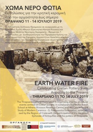 The Thrapsano Cultural Association is organising a series of cultural events centred on Cretan pottery, in collaboration with the British School at Athens (Knossos Research Centre) and the Centre for the Study of Modern Ceramics – G. Psaropoulos Foundation, co-organised by the Region of Crete with the participation of the Herakleion Ephorate of Antiquities and the potters of Thrapsano