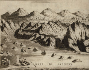 image: The Mani Promontory in the Southern Peloponnese. CORONELLI, Vincenzo. Description géographique et historique de la Morée … , Paris, Nicolas Langlois, MDCLXXXVII [=1687]