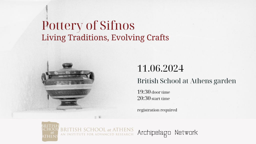 The British School at Athens (BSA) and Archipelago Network invite you to join us for an exclusive evening celebrating the rich heritage of Sifniot pottery, exploring its significance in shaping the island’s cultural landscape. For the first time in Athens, the BSA proudly presents the premiere screening of Archipelago Network’s docu-series, offering an intimate glimpse into the modern potting communities of Sifnos.
