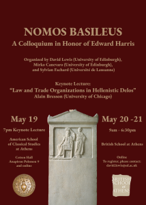 19:30 Keynote: Alain Bresson (Chicago): ‘Law and Trade Organization in Hellenistic Delos’