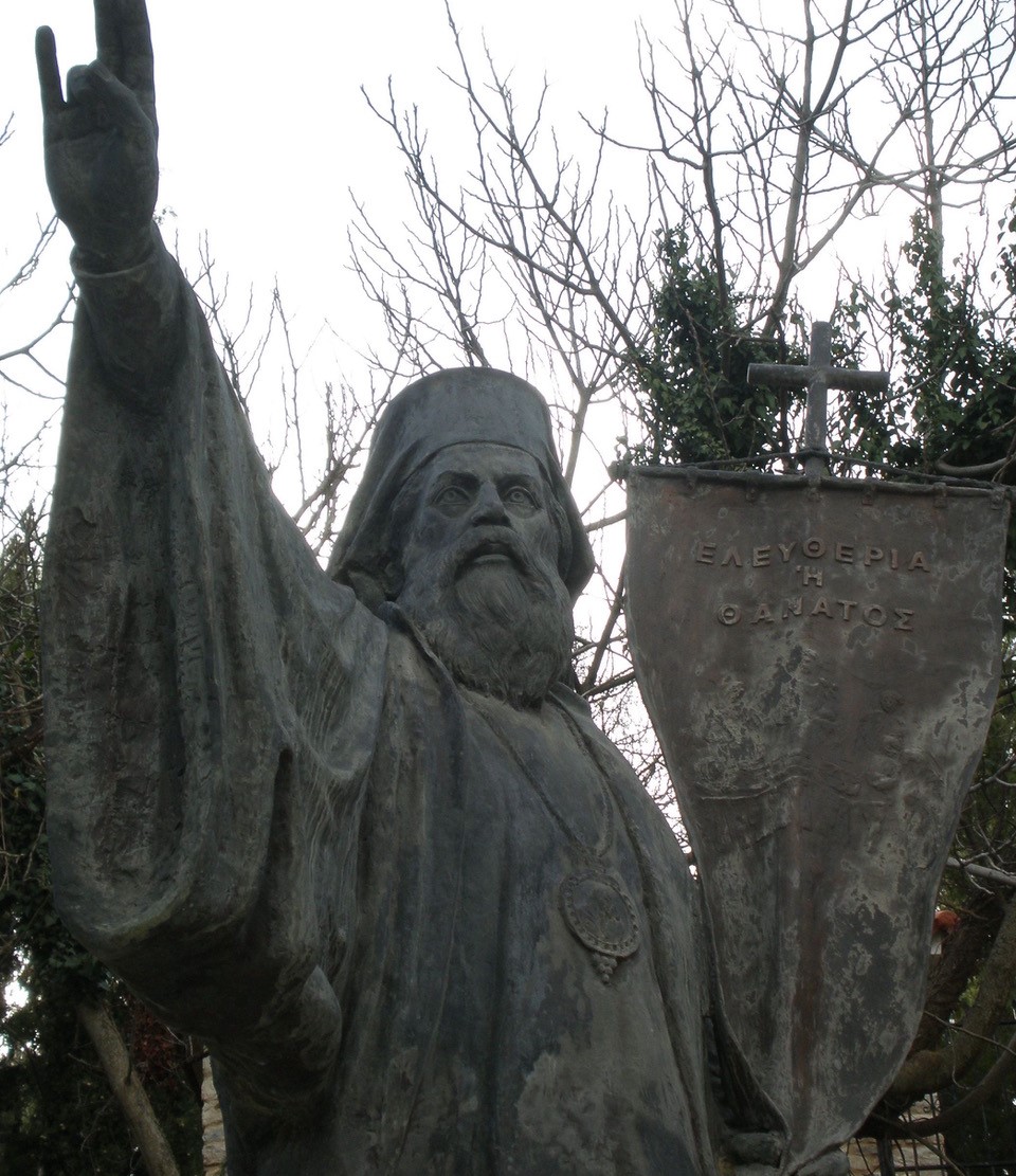 Image: Statue of Bishop Germanos of Old Patras at the Monastery of Agia Lavra, Kalavryta.