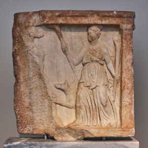 Artemis holding two long torches, 4th century B.C., Megara. National Archaeological Museum of Athens. NM 4540. Photo by George E. Koronaios (22 July 2018) via Wikimedia Commons, shared under a CC BY-NC-SA 4.0 licence.