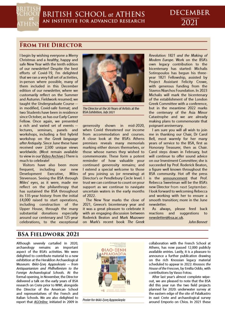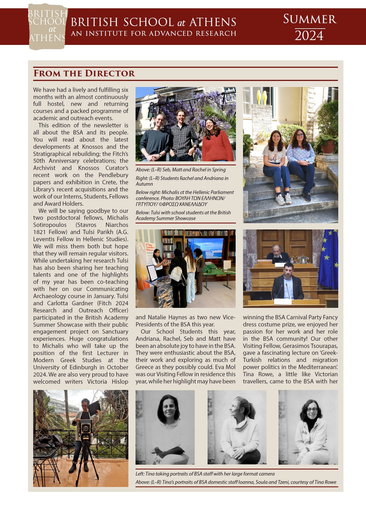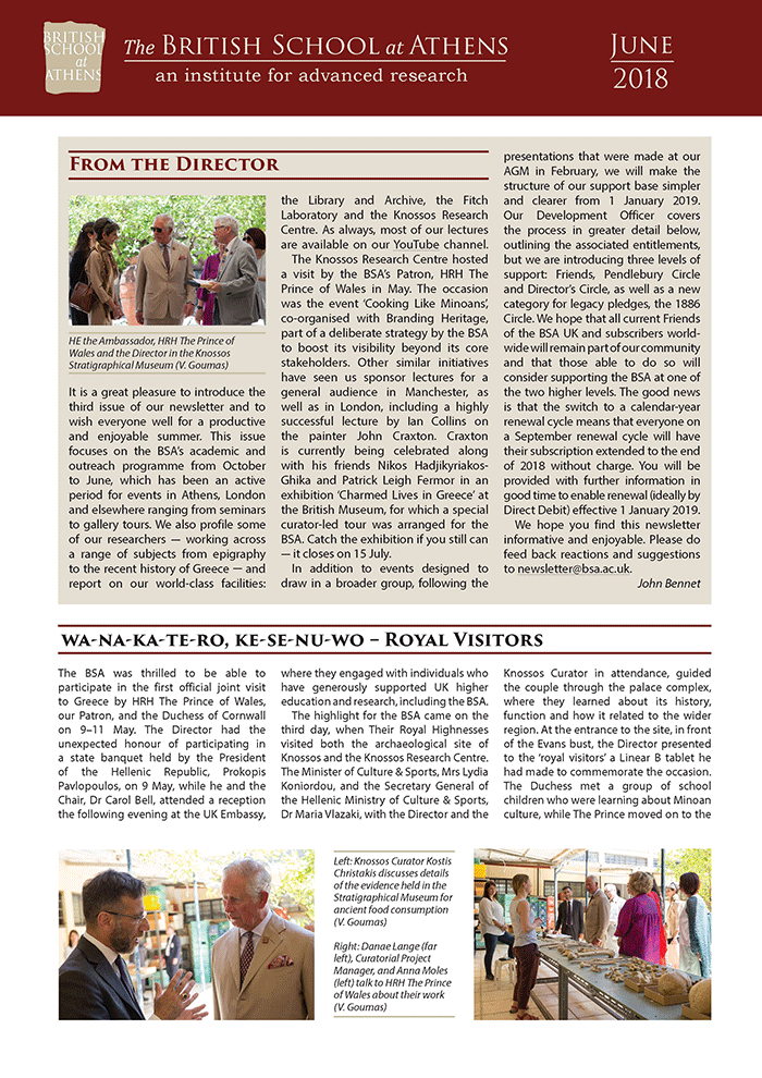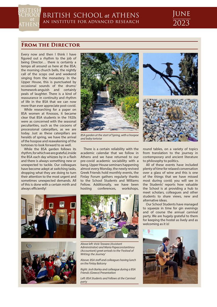 The newsletter (available for download from the links below) offers twice-yearly reviews of BSA activities and people in June and December. It replaces and augments the illustrated narrative formerly published in the Annual Report. A concise, plain-text report on the BSA’s charitable activities and accounts continues to appear in our Financial Statements.