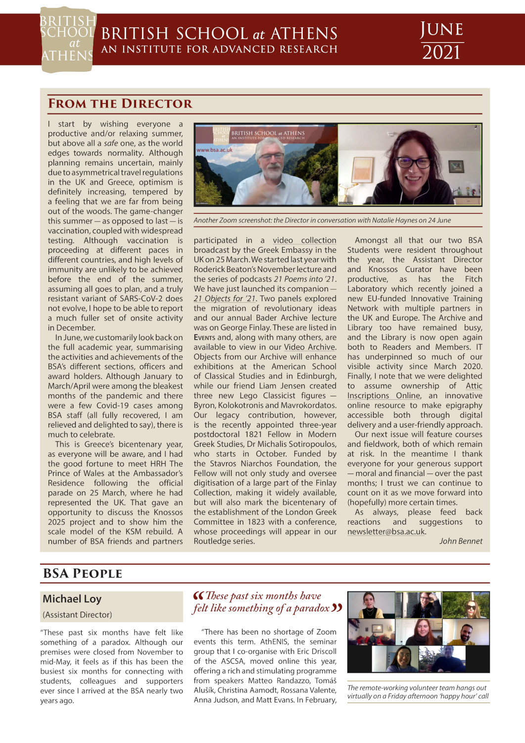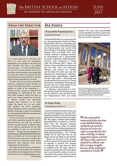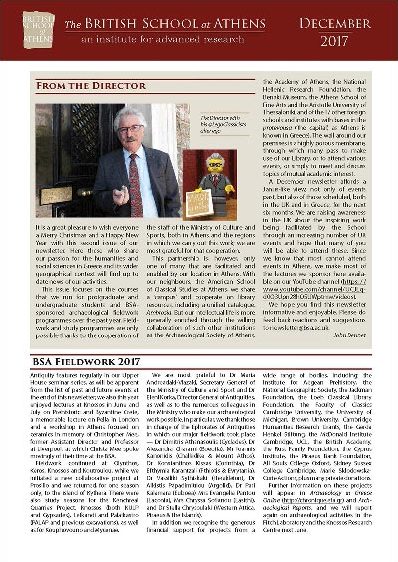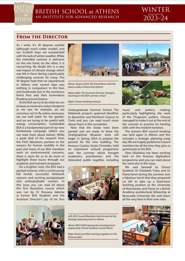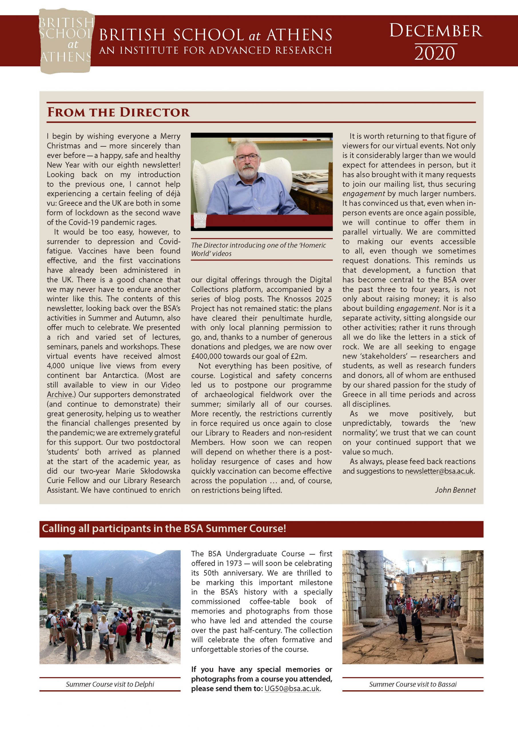 The newsletter (available for download from the links below) offers twice-yearly reviews of BSA activities and people in June and December. It replaces and augments the illustrated narrative formerly published in the Annual Report. A concise, plain-text report on the BSA’s charitable activities and accounts continues to appear in our Financial Statements.