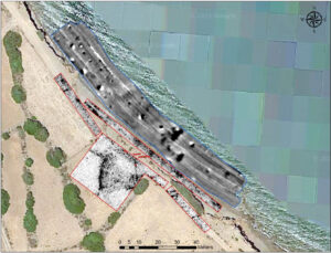 A team from FORTH led by Dr. Nikos Papadopoulos conducted geophysical survey in 2023 in both Chiona and Kouremenos bays. Resistivity and radar were used on the coast itself, with underwater resistivity also done up to a depth of c. 1.5 m. Anomalies potentially due to walls were found on Kouremenos beach. Clear signs of structures were also found at East Beach.