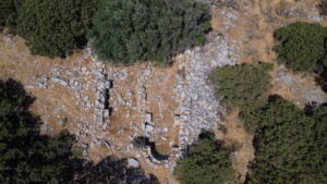 The excavations at Kato Choria provide the first excavated evidence of the non-monumental archaeology of the extra-mural settlement below Kastro Apalirou. Investigations of buildings from Areas D and F in 2024 have revealed evidence for material culture related to domestic activities as well as the use of buildings for burial. Initial observations would suggest that the chronology of the material encountered follows a similar timespan to the kastro with ceramics of the 8th and 9th century being particularly visible as well as some material which may date to the 10th or 11th century.