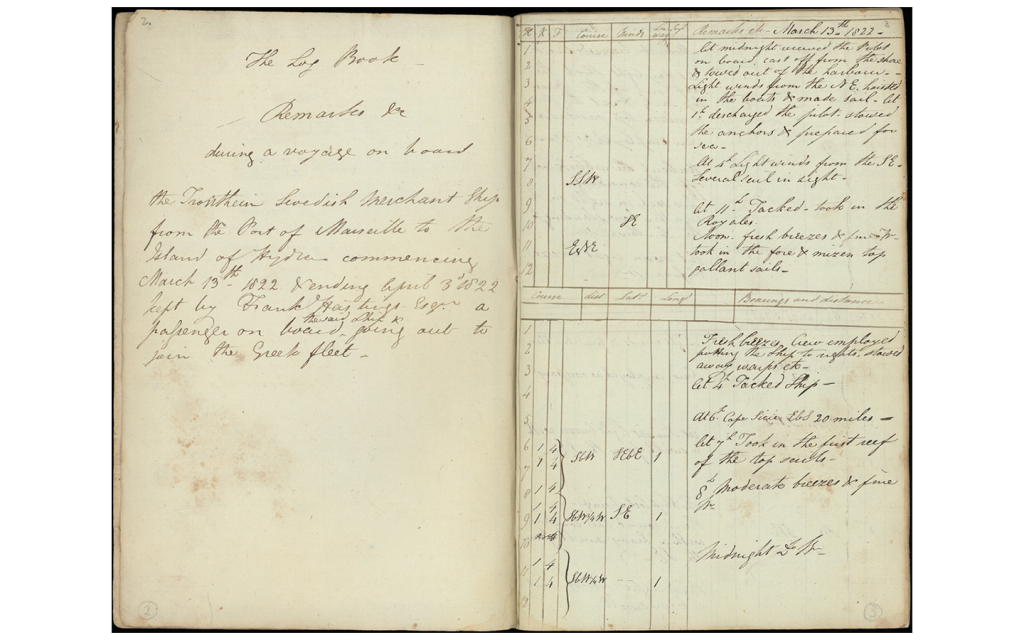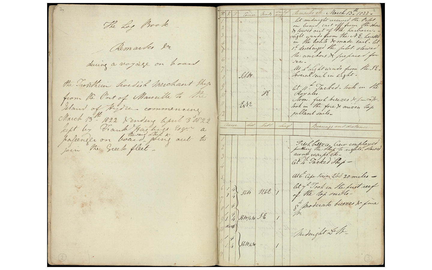 Also included in the collection are the papers of Finlay’s father, John, and those of his fellow-philhellene Captain Frank Abney Hastings, which had come into Finlay’s possession when he purchased them in 1830. The Hastings collection includes personal and official correspondence, ship’s logs, notes that he took on board or (more rarely) ashore, as well as memoranda on strategy and on the naval organisation of the revolutionary forces.