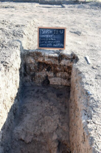 Further north, Trench I6.21, excavated in 2024, revealed a potential kiln (oval, 1.6m x 1.0m, with a clay floor 0.7m x 0.7m), an associated waste deposit and an oval house (4.3m x 2.95m) made using mud in the pisé technique. The house was of the LN II period, and may have had an open area to the east.
