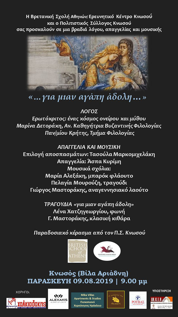 The Knossos Research Centre of the British School at Athens warmly invites you to attend Amica silentia lunae, the “Friendly Silence of the Moon”, an evening of music and poetry […]
