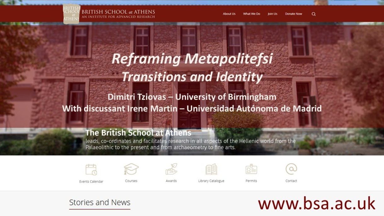 Professor Dimitris Tziovas (University of Birmingham), “Reframing Metapolitefsi: Transitions and Identity” Abstract The event aims to offer a new perspective on the period from junta to crisis based on the new […]
