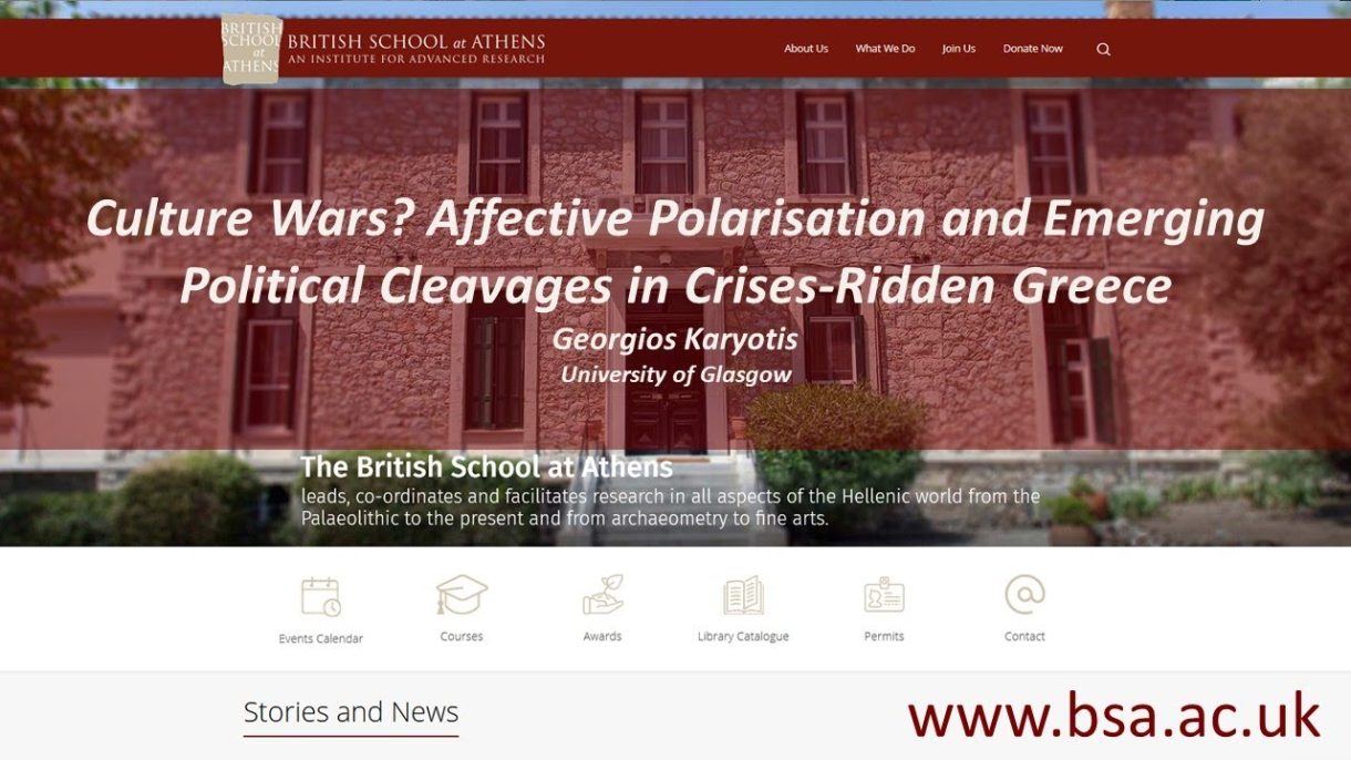 Georgios Karyotis (University of Glasgow), “Culture Wars? Affective Polarisation and Emerging Political Cleavages in Crises-Ridden Greece” Discussant: Manos Matsaganis (Polytechnic University of Milan) Research series on Modern Greek Studies organised […]